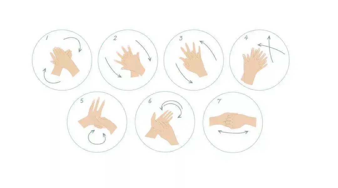 02保持手部衛(wèi)生。接觸公共環(huán)境或公共用品后,用肥皂或洗手液,采用七步洗手法搓洗,流水沖凈。如沒有洗手設(shè)施,可使用含有70%至80%的酒精搓手液(免洗洗手液)潔凈雙手。