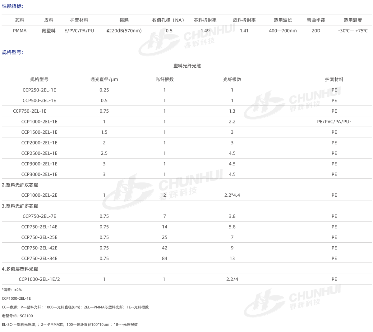 PMMA芯塑料光纖,PE等塑料為護(hù)套